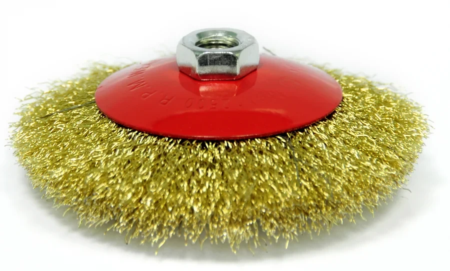 Щетка для УШМ, 125 мм, М14, 'тарелка', латунированная витая проволока 0,3 мм