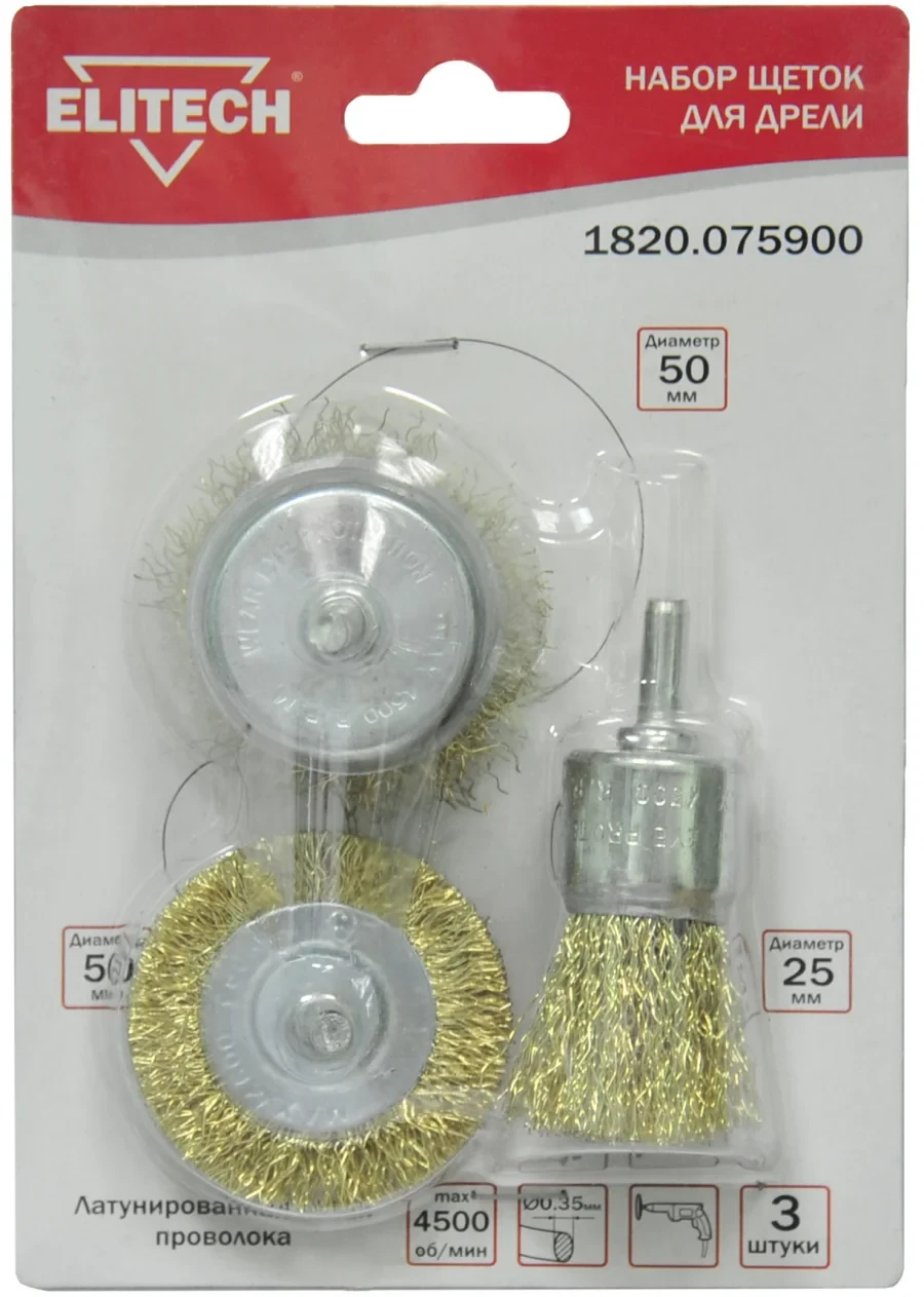 Набор щеток д\\дрели, 3 шт., 1 плоская, 50 мм, + 2 'чашки', 25-50 мм, со шпильками, мет.