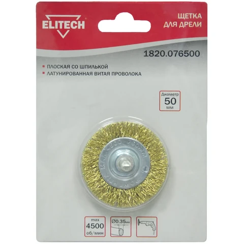 Щетка д\\дрели, 50 мм, плоская со шпилькой, латунированная витая проволока 0,3 мм
