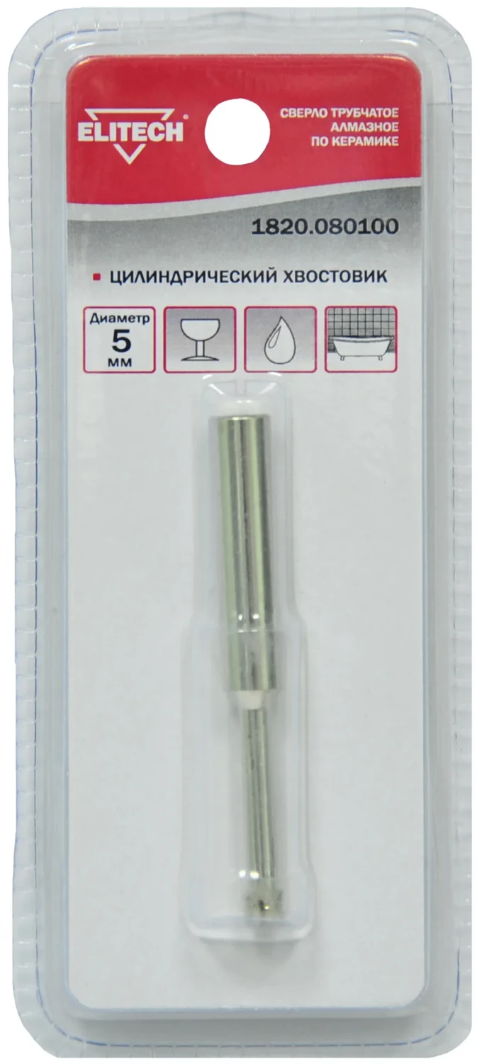 Сверло трубчатое алмазное по керамике, цилиндрический хвостовик, ф5мм