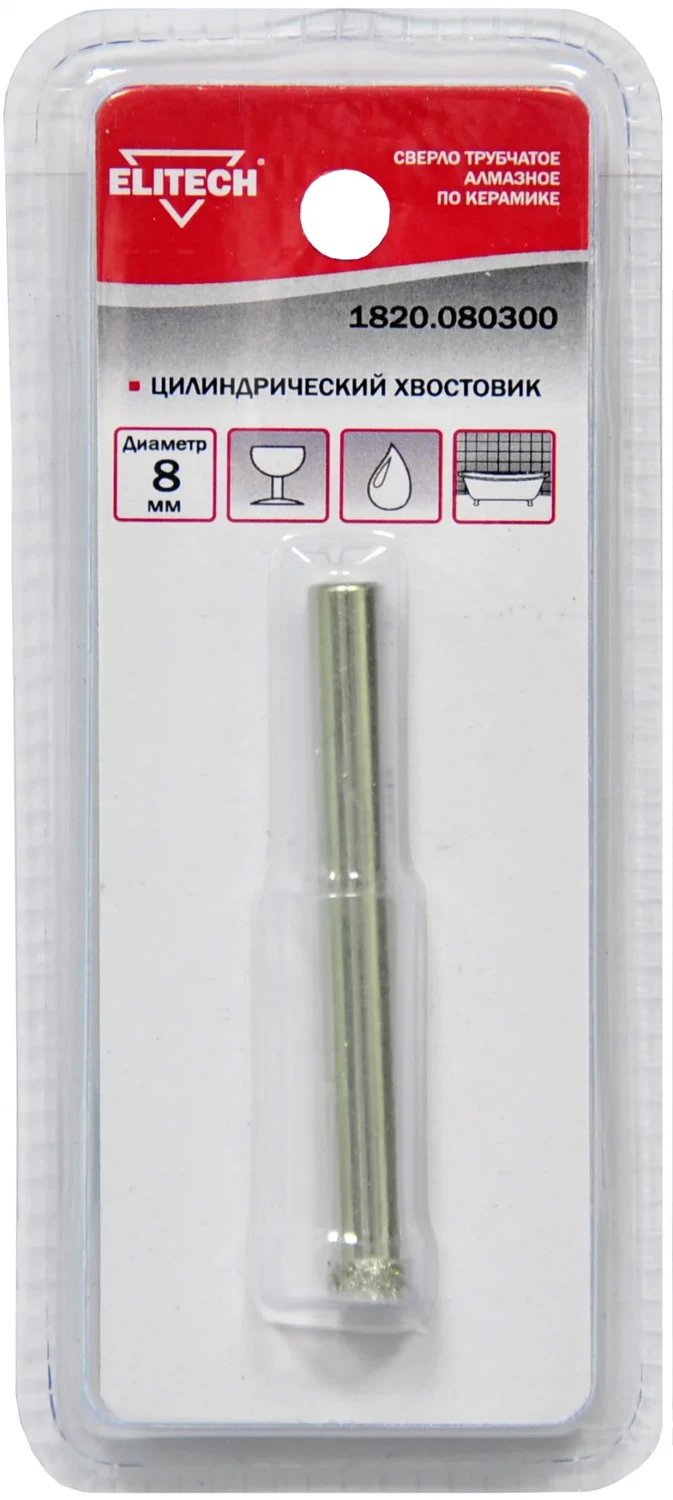 Сверло трубчатое алмазное по керамике, цилиндрический хвостовик, ф8мм
