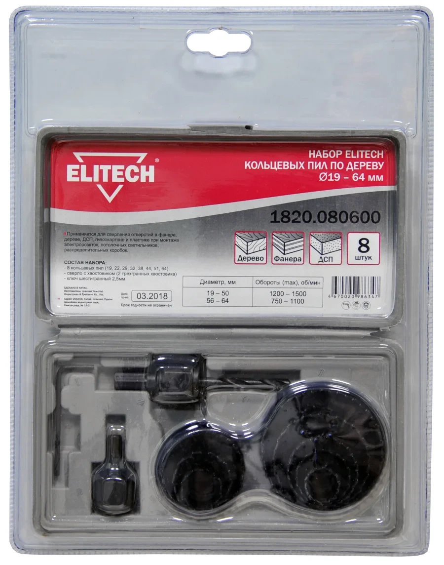 Набор пил кольцевых по дереву ф19-64мм, 11 предметов, кейс