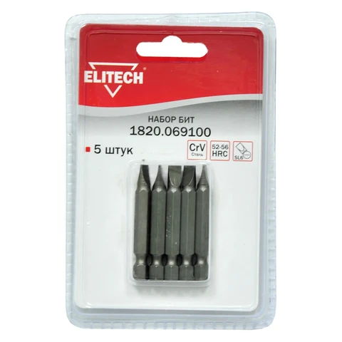 Набор бит 5 штук.Сталь: CrV Твердость стали: HRC 52-56Тип: SL6Длина биты: 50ммУпаковка блистер