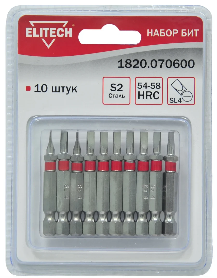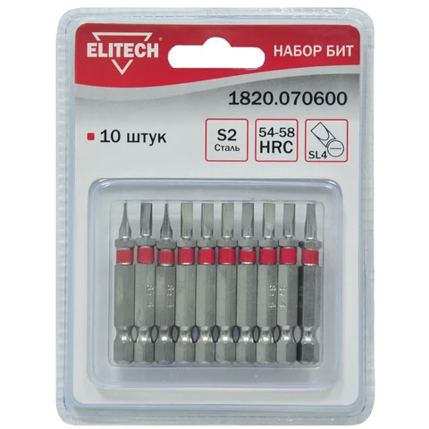 Набор бит- 10штСталь: S2 Твердость стали: HRC 54-58Тип: SL4Длина биты: 50ммУпаковка блистер
