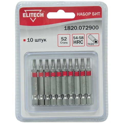 Набор бит- 10штСталь: S2 Твердость стали: HRC 54-58Тип: TORX20Длина биты: 50ммУпаковка блистер