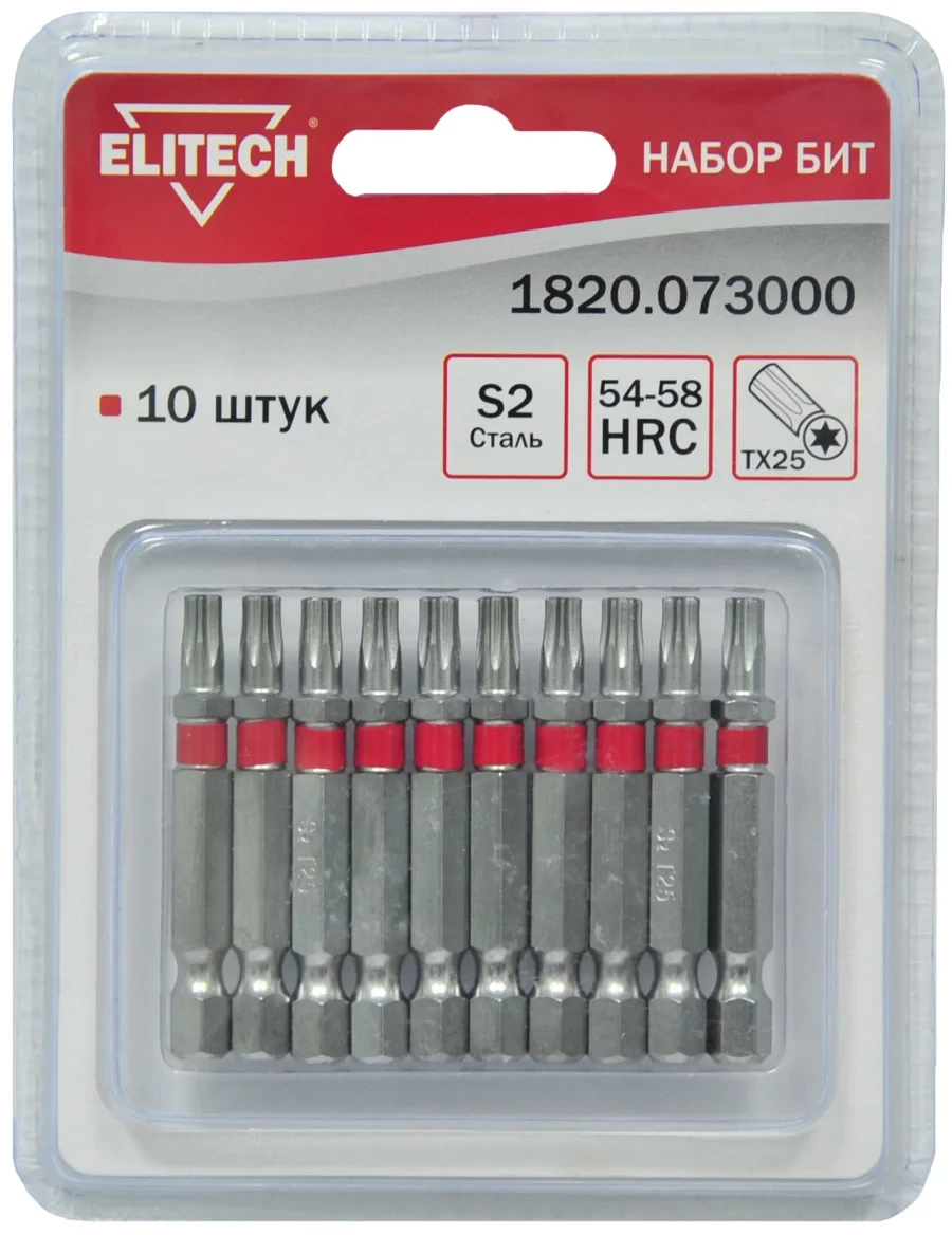 Набор бит- 10штСталь: S2 Твердость стали: HRC 54-58Тип: TORX25Длина биты: 50ммУпаковка блистер
