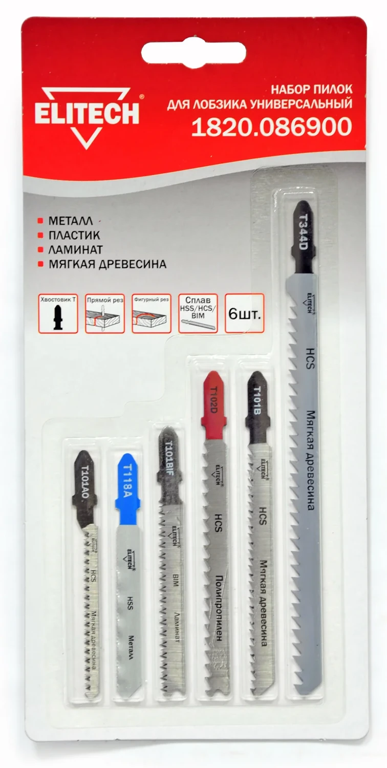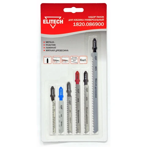 Полотна пильные для электрических лобзиков. 6 штук. Предназначены для распиловки металла, пластика, ламината, мягкой древесины. Имеет стандартный Т- образный хвостовик.