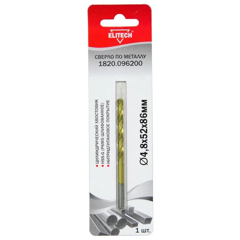 Сверло 4.8х86 HSS-G+TiN 1шт Elitech 1820.096200