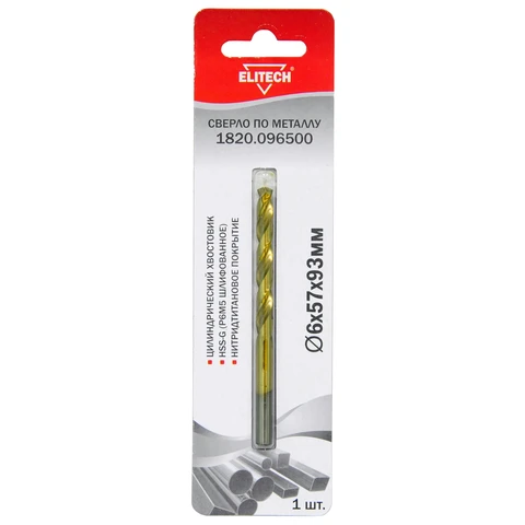 Сверло 6х93 HSS-G+TiN 1шт Elitech 1820.096500