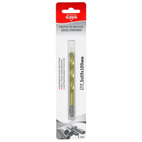 Сверло 7.5х109 HSS-G+TiN 1шт Elitech 1820.096900
