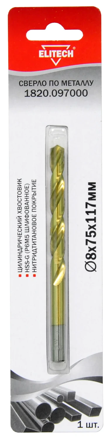 Сверло 8х117 HSS-G+TiN 1шт Elitech 1820.097000
