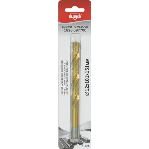 Сверло 12х151 HSS-G+TiN 1шт Elitech 1820.097700