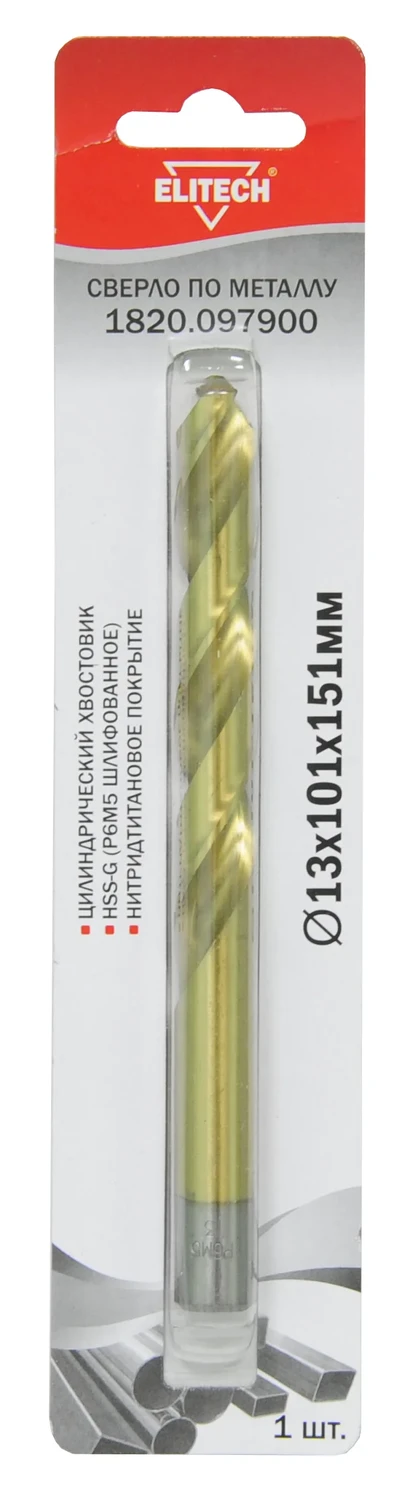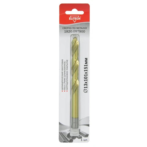 Сверло д\\металла, H-G, нитридтитановое покрытие, хв-цилиндр, 13х101х151мм, 1шт, блистер