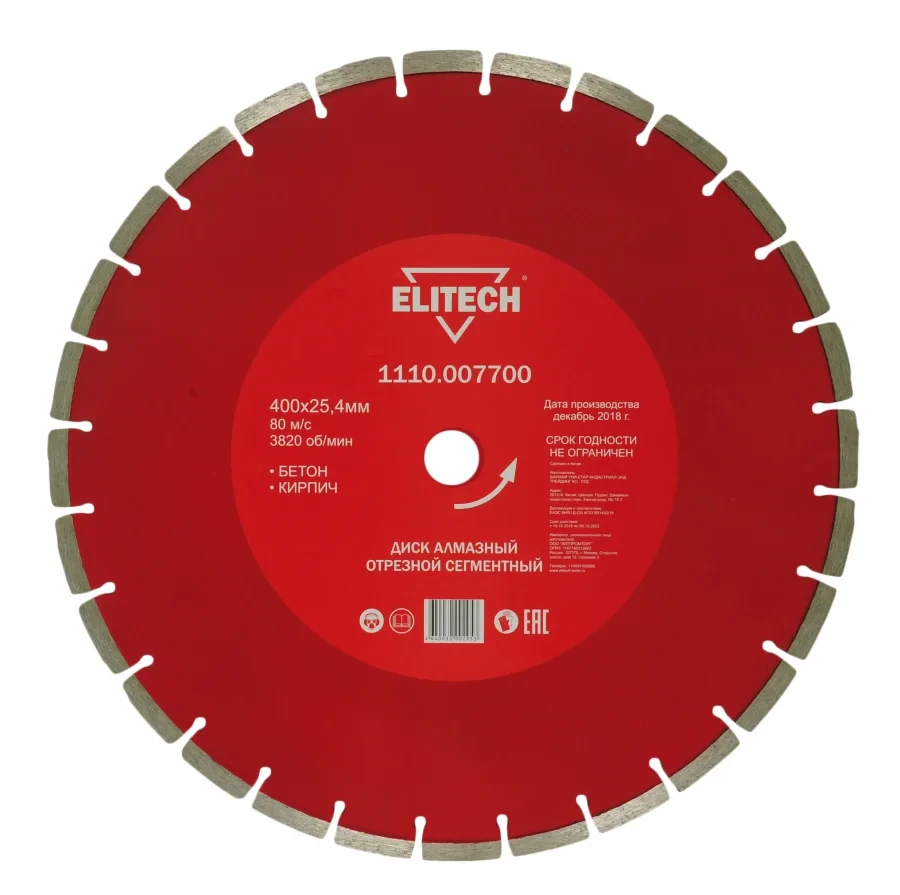Диск алмазный сегментный,ф400х25.4мм, бетон, кирпич