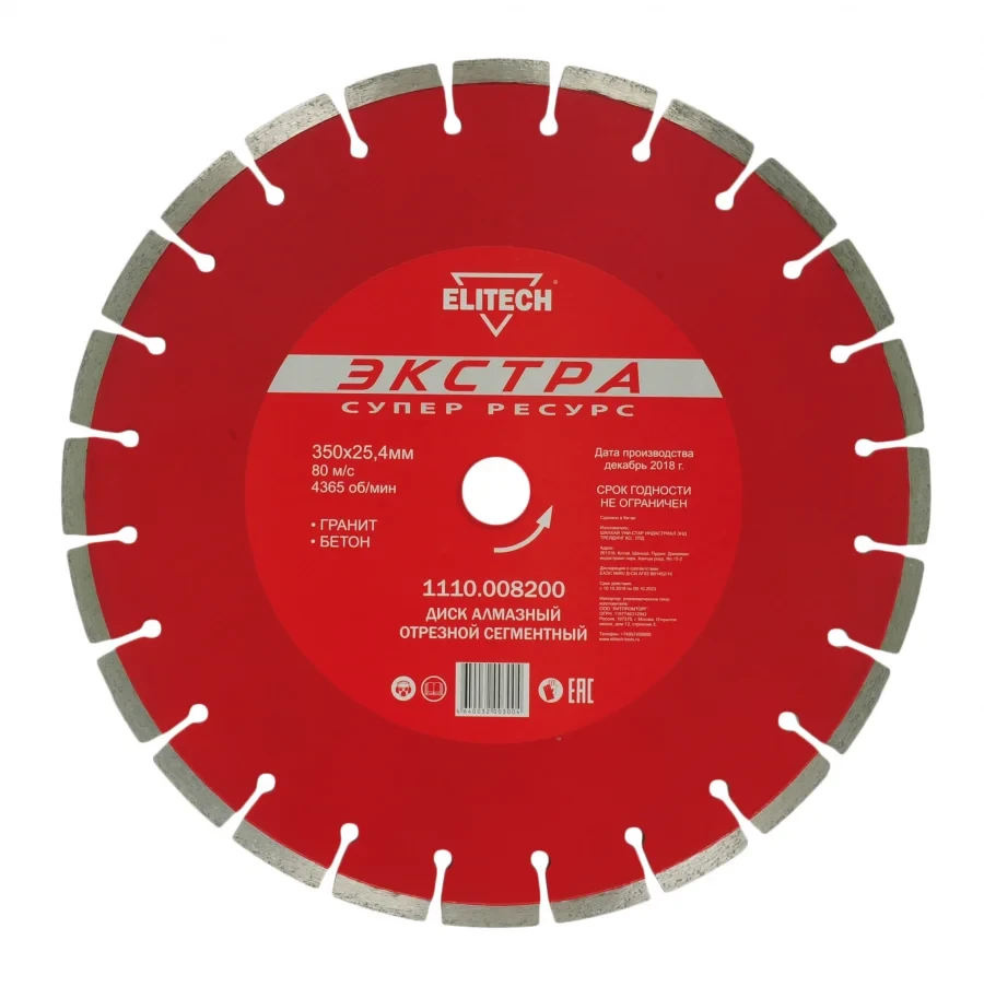 - Диск алмазный Экстра/супер ресурс, 350х25,4 гранит Elitech 1110.008200 предназначен для камнерезных станков.