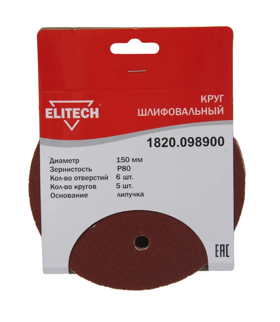 Шлифкруг,липучка,6отв,ф150мм,P80,5шт,д\\дерева,металла