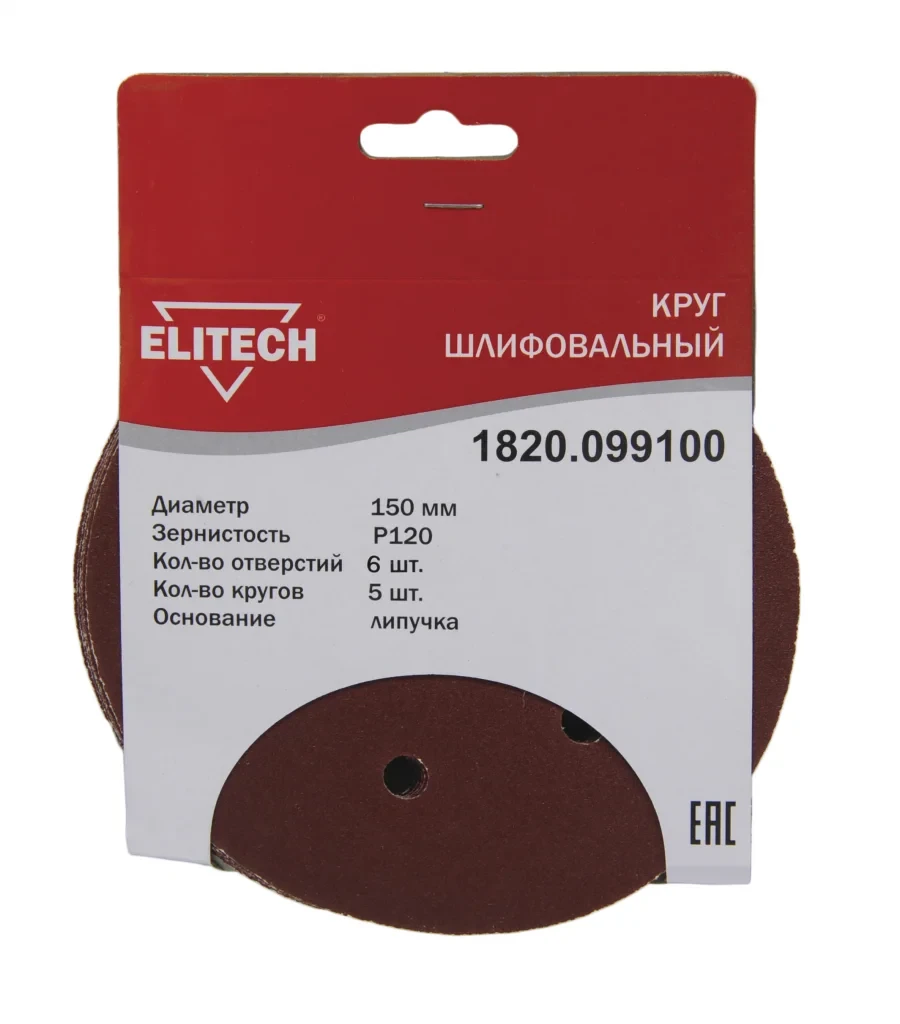 Шлифкруг,липучка,6отв,ф150мм,P120,5шт,д\\дерева,металла