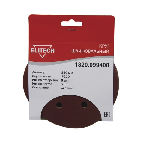 Шлифкруг,липучка,6отв,ф150мм,P220,5шт,д\\дерева,металла