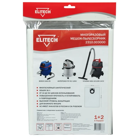 Многоразовый мешок-пылесборник 1+2 шт. для пылесосов BOSCH GAS 25