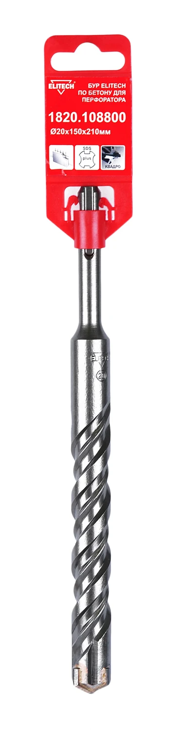 Бур SDS+ (1820.108800) 20x150х210мм., квадро, двойная спираль, Elitech, 193697.