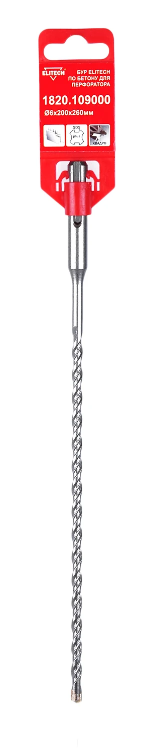 Бур SDS+ (1820.109000) 6x200х260мм., квадро, двойная спираль, Elitech, 193699.