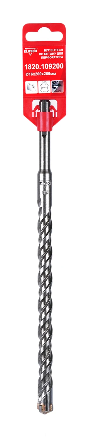 Бур SDS+ (1820.109200) 16x200х260мм., квадро, двойная спираль, Elitech, 193701.