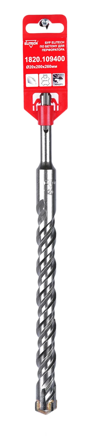 Бур SDS+ (1820.109400) 20x200х260мм., квадро, двойная спираль, Elitech, 193703.