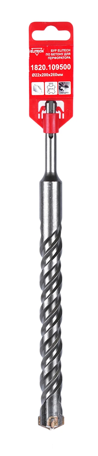 Бур SDS+ (1820.109500) 22x200х260мм., квадро, двойная спираль, Elitech, 193704.