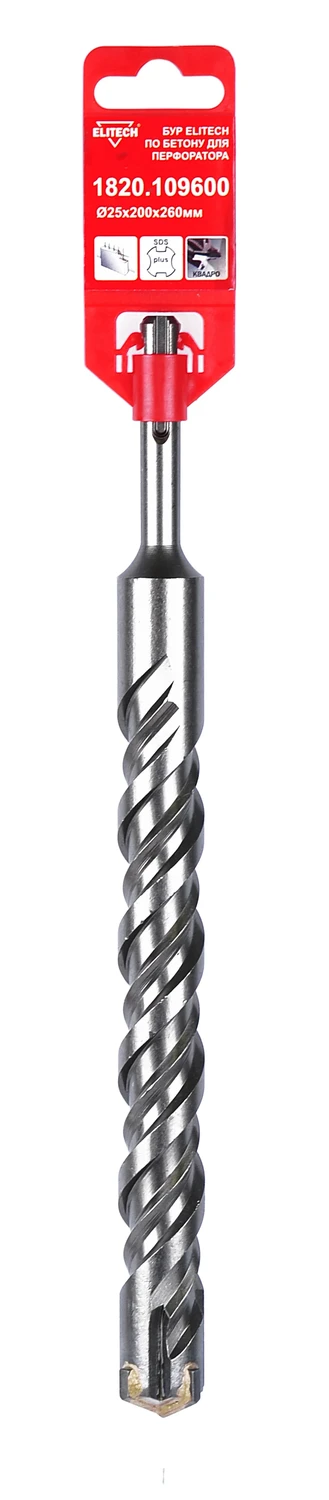 Бур SDS+ (1820.109600) 25x200х260мм., квадро, двойная спираль, Elitech, 193705.