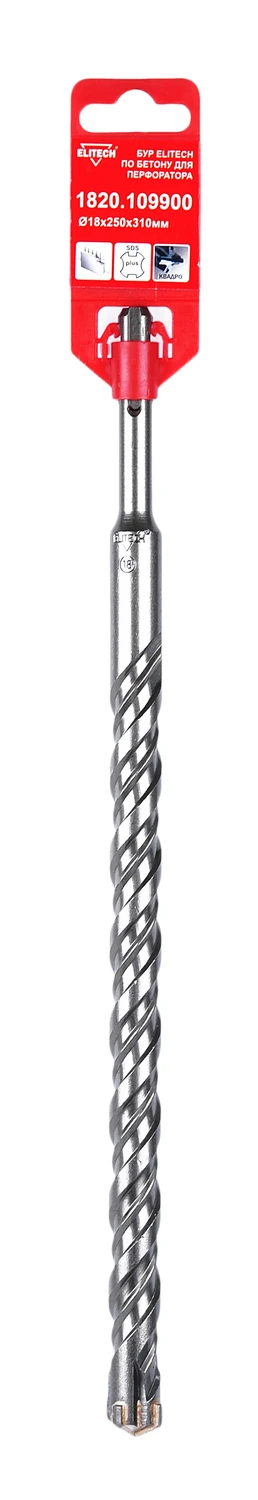 Бур SDS+ (1820.109900) 18x250х310мм., квадро, двойная спираль, Elitech, 193708.