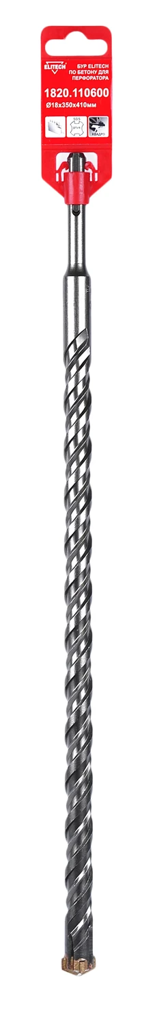 Бур SDS+ (1820.110600) 18x350х410мм., квадро, двойная спираль, Elitech, 193715.