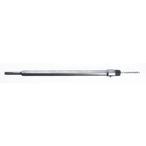 Хвостовик SDS Plus используется совместно с буровой коронкой и центрирующим сверлом для их надёжной фиксации при сверлении перфоратором.