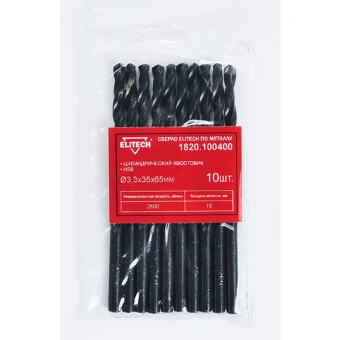 Сверло HSS 3.3х65 1шт Elitech 1820.100400