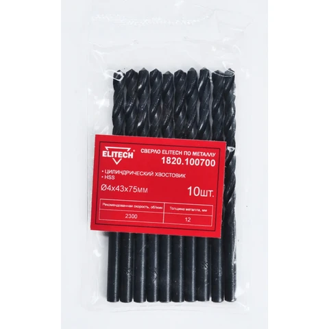 Сверло HSS 4.0х75 1шт Elitech 1820.100700