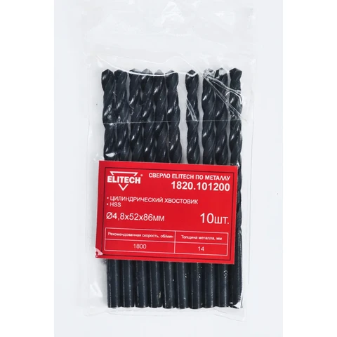 Сверло HSS 4.8х86 1шт Elitech 1820.101200