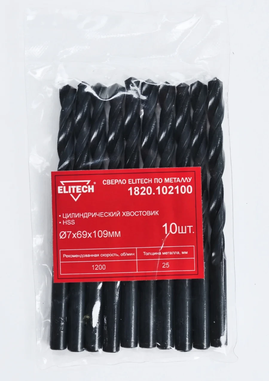 Сверло HSS 7.0х109 1шт Elitech 1820.102100