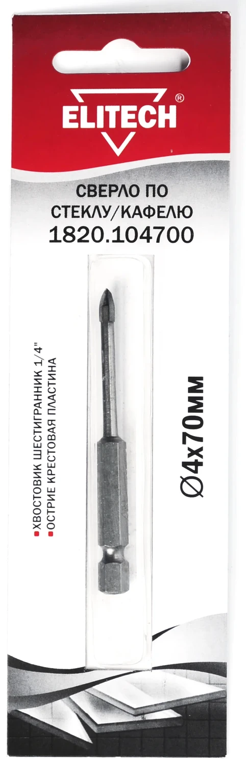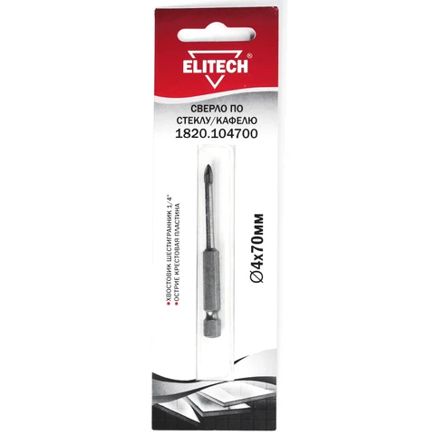 Сверло 4х70мм HEX1/4' стекло Elitech 1820.104700