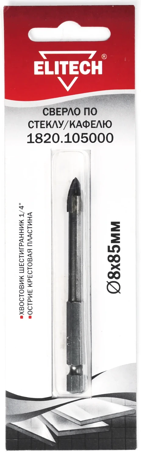 Сверло 8х85мм HEX1/4' стекло Elitech 1820.105000