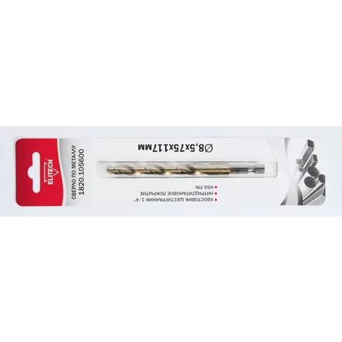 Сверло 8.5х117 HSS-G+TiN HEX1/4' Elitech 1820.105600