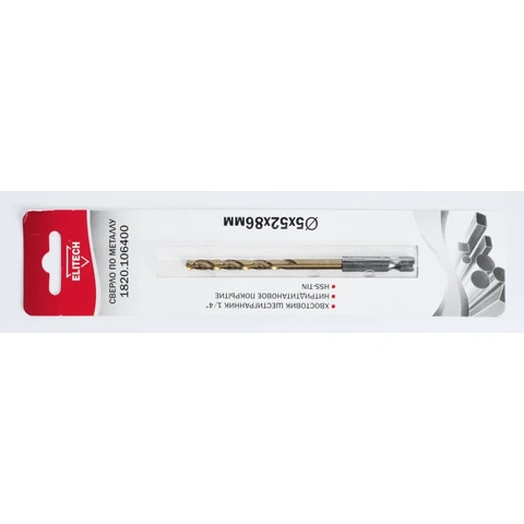 Сверло 5х86 HSS-G+TiN HEX1/4' Elitech 1820.106400