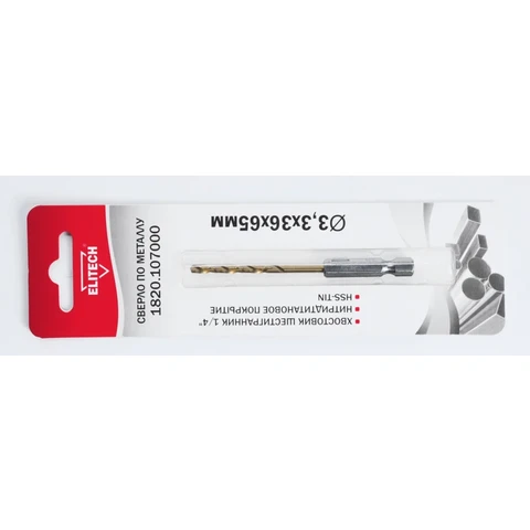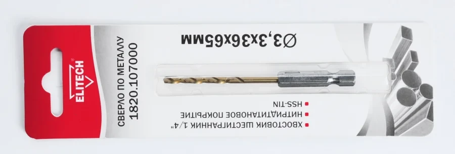 Сверло 3.3х65 HSS-G+TiN HEX1/4' Elitech 1820.107000