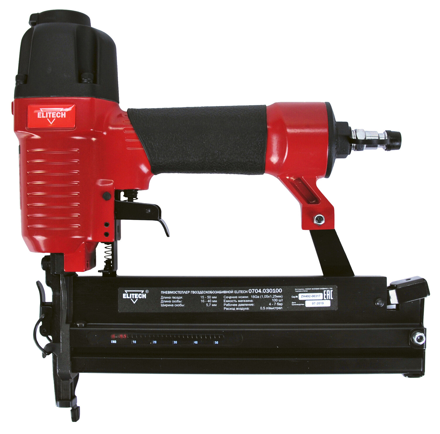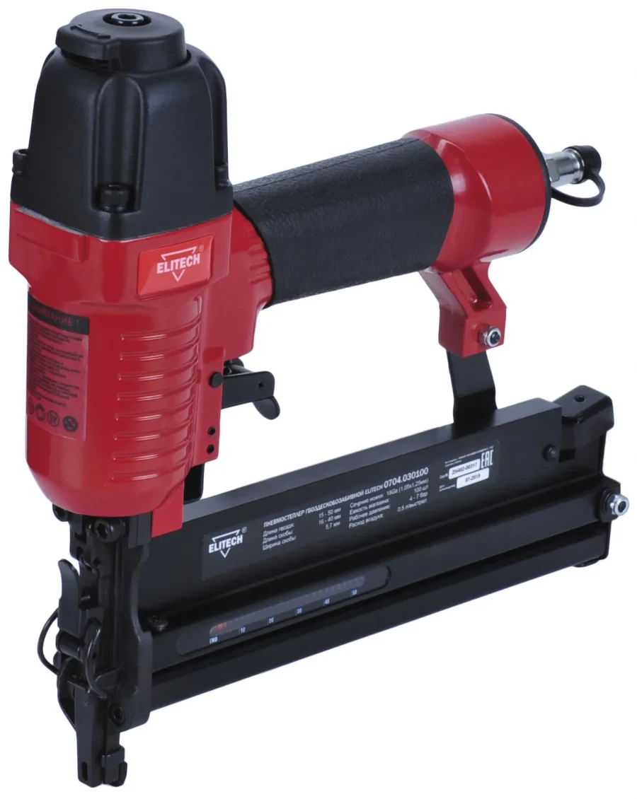 Пневмостеплер 0704.030100 для работы использует сжатый воздух от компрессора давлением от 4 до 7 бар. Степлер универсальный и работает как с гвоздями, так и со скобами. Подходит для фиксации листовых матеоталов, досок толщиной до 25мм, утеплителя, щитовых панелей.