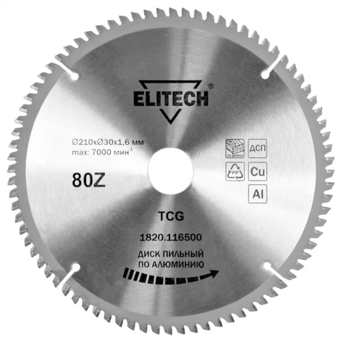 Диск пильный 210х30 80зуб алюминий Elitech 1820.116500