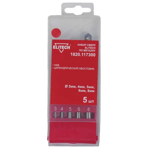 Набор сверл HSS-R 5шт Elitech 1820.117300