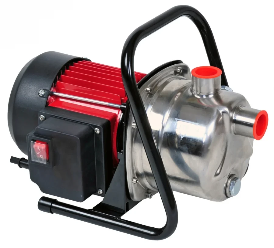 Насос садовый поверхностный. Для перекачивания чистой воды. Корпус насоса из нержавеющей стали. Обязательное условие работы с установленным обратным клапаном на всасывающем шланге.