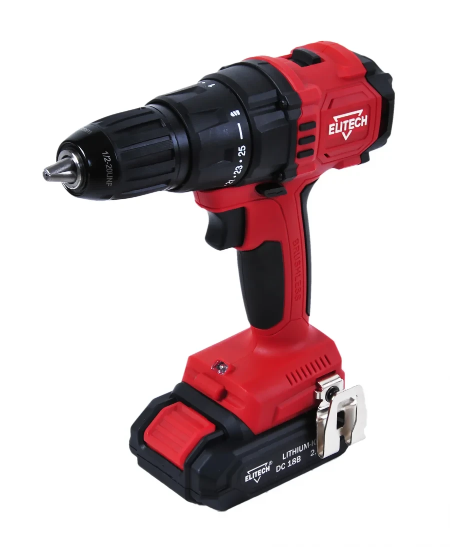 Аккумуляторная дрель-шуруповерт ELITECH ДА 18БЛ2 ( E2201.011.01) с бесщеточным двигателем предназначена для установки крепежа, сверления отверстий в черных и цветных металлах, дереве и производных материалов на его основе (фанера, ДСП, OSB, МДФ и подобные), а также различных видов пластика.
