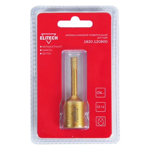 Коронка алмазная для угловых шлифмашин, предназначена для сверления керамогранита, гранита, напольной плитки высокой твёрдости, натурального камня, керамики, бетона, кирпича, ограниченно подходит для сверления листового металла. Идеально подходит для сверления материалов неоднородного состава.