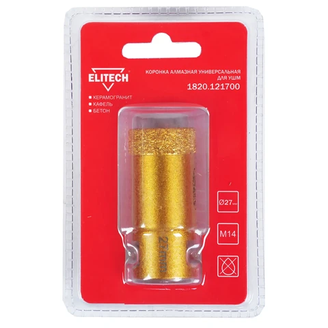 Коронка алмазная для угловых шлифмашин, предназначена для сверления керамогранита, гранита, напольной плитки высокой твёрдости, натурального камня, керамики, бетона, кирпича, ограниченно подходит для сверления листового металла. Идеально подходит для сверления материалов неоднородного состава.