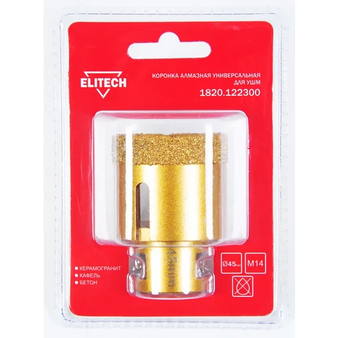 Коронка алмазная для угловых шлифмашин, предназначена для сверления керамогранита, гранита, напольной плитки высокой твёрдости, натурального камня, керамики, бетона, кирпича, ограниченно подходит для сверления листового металла. Идеально подходит для сверления материалов неоднородного состава.