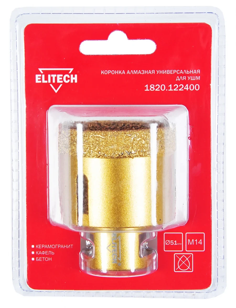 Коронка алмазная для угловых шлифмашин, предназначена для сверления керамогранита, гранита, напольной плитки высокой твёрдости, натурального камня, керамики, бетона, кирпича, ограниченно подходит для сверления листового металла. Идеально подходит для сверления материалов неоднородного состава.